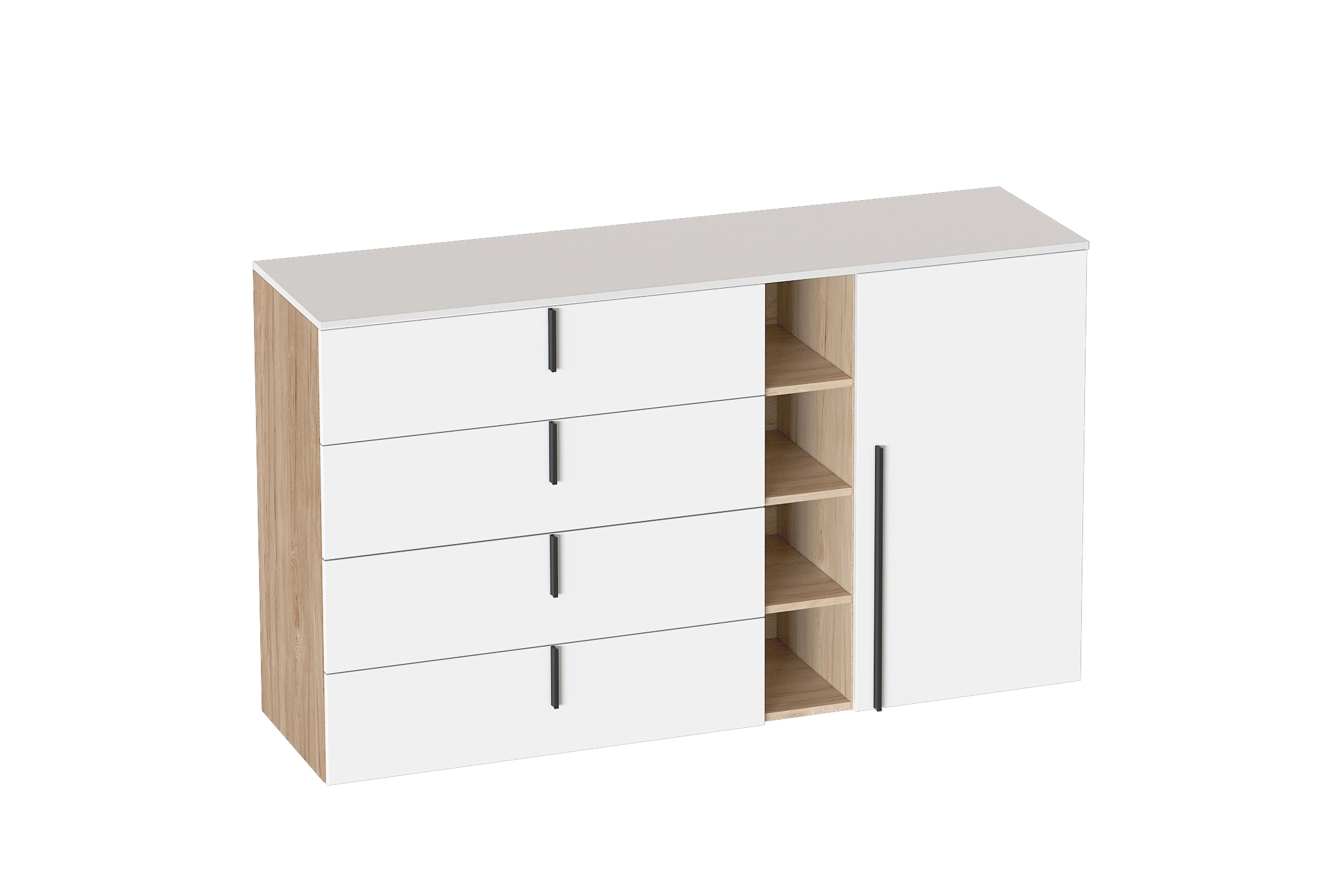 Цветовое исполнение корпуса: Дуб светлый натуральный, фасад: Белая Аляска WML.