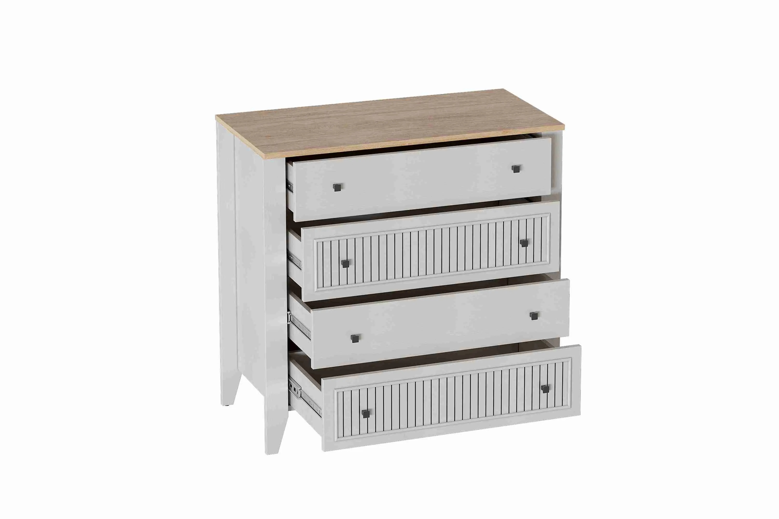 УФ-фотопечать полосок на фасадах в обрамлении пластиковых молдингов придает изделию оригинальный стиль современной классики. Ящики полного выдвижения - на шариковых направляющих скользят бесшумно и плавно. Дно и задние стенки выполнены из ХДФ. На опорах размещены войлочные подпятники. Высота опор 104 мм.