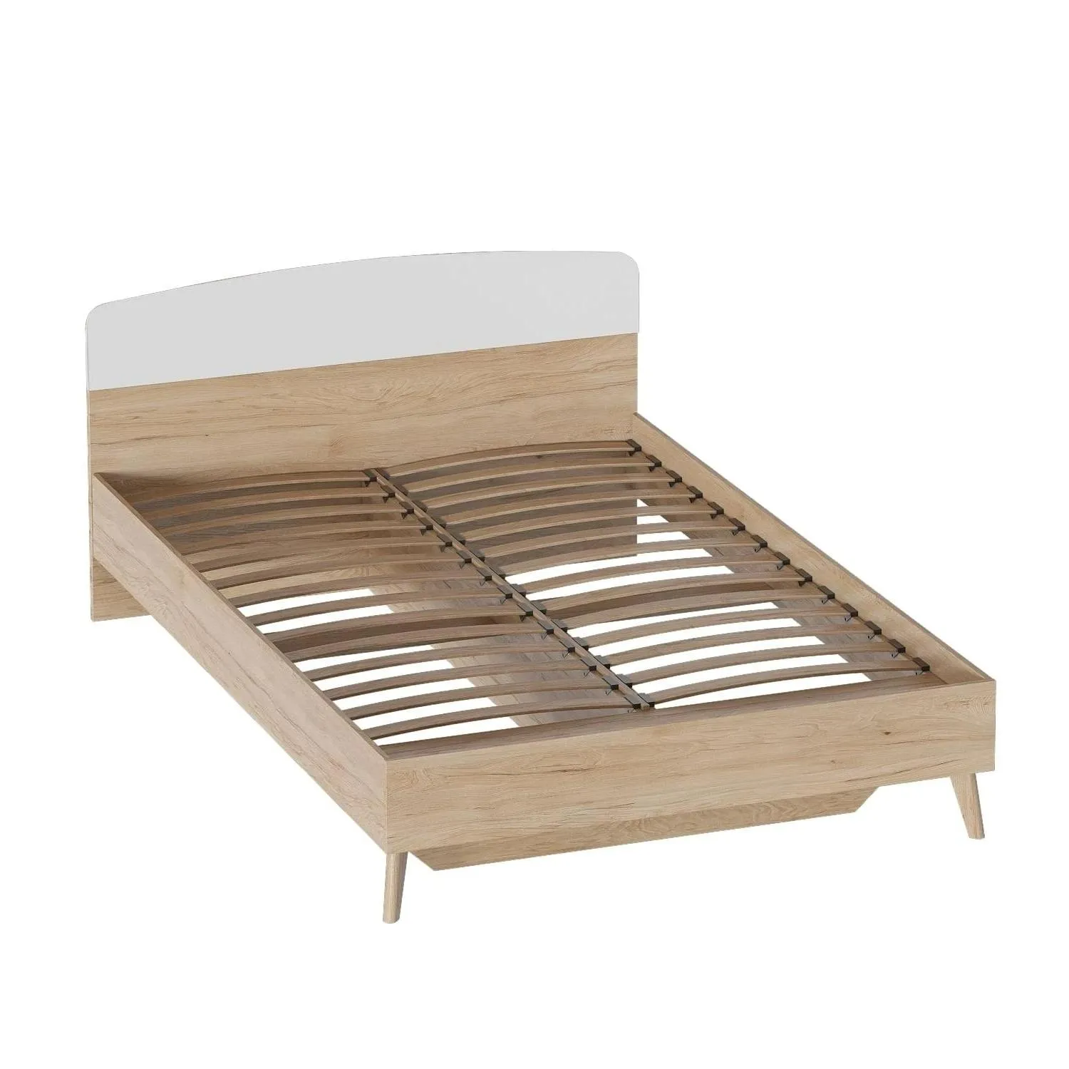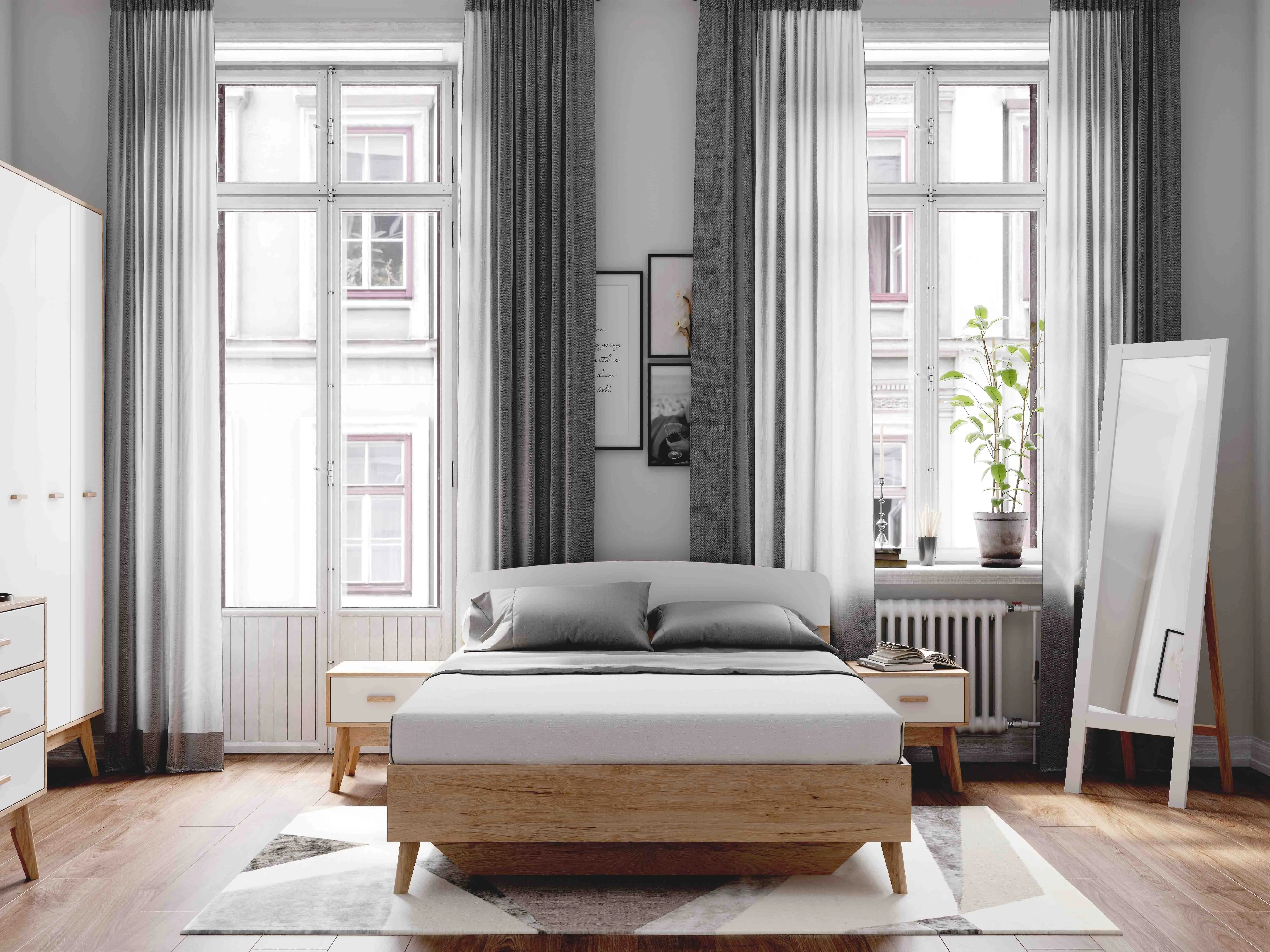 <virtues>Кровать выбрали из-за небольшой длины, всего 205,5 см и в дополнение к спальному гарнитуру Калгари. Кровать смотрится легко, совсем не загромождает пространство. Высокие ножки позволяют расположить под кроватью красивые коробки с разными мелочами. Кровать хорошо смотрится в скандинавском интерьере.</virtues> <limitations>Не обнаружено</limitations>