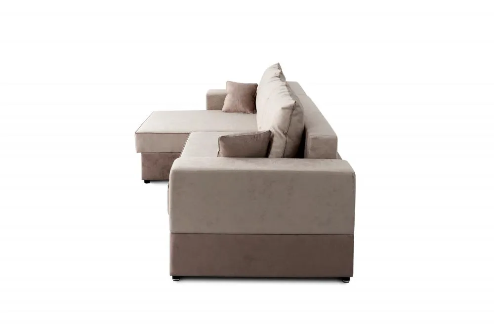 <virtues>Привезли нам наш диван, уже не могли дождаться)). Очень удобный. Глубокий и вместительный. Поверхность ровная, хорошие большие подушки. Цвет я бы сказала универсальный, подходит нам очень. Хотели сразу обыкновенный диван, но когда в магазине увидели угловой, сомнения отпали. Сделали перестановку и вписался очень хорошо</virtues> <limitations>нет</limitations>
