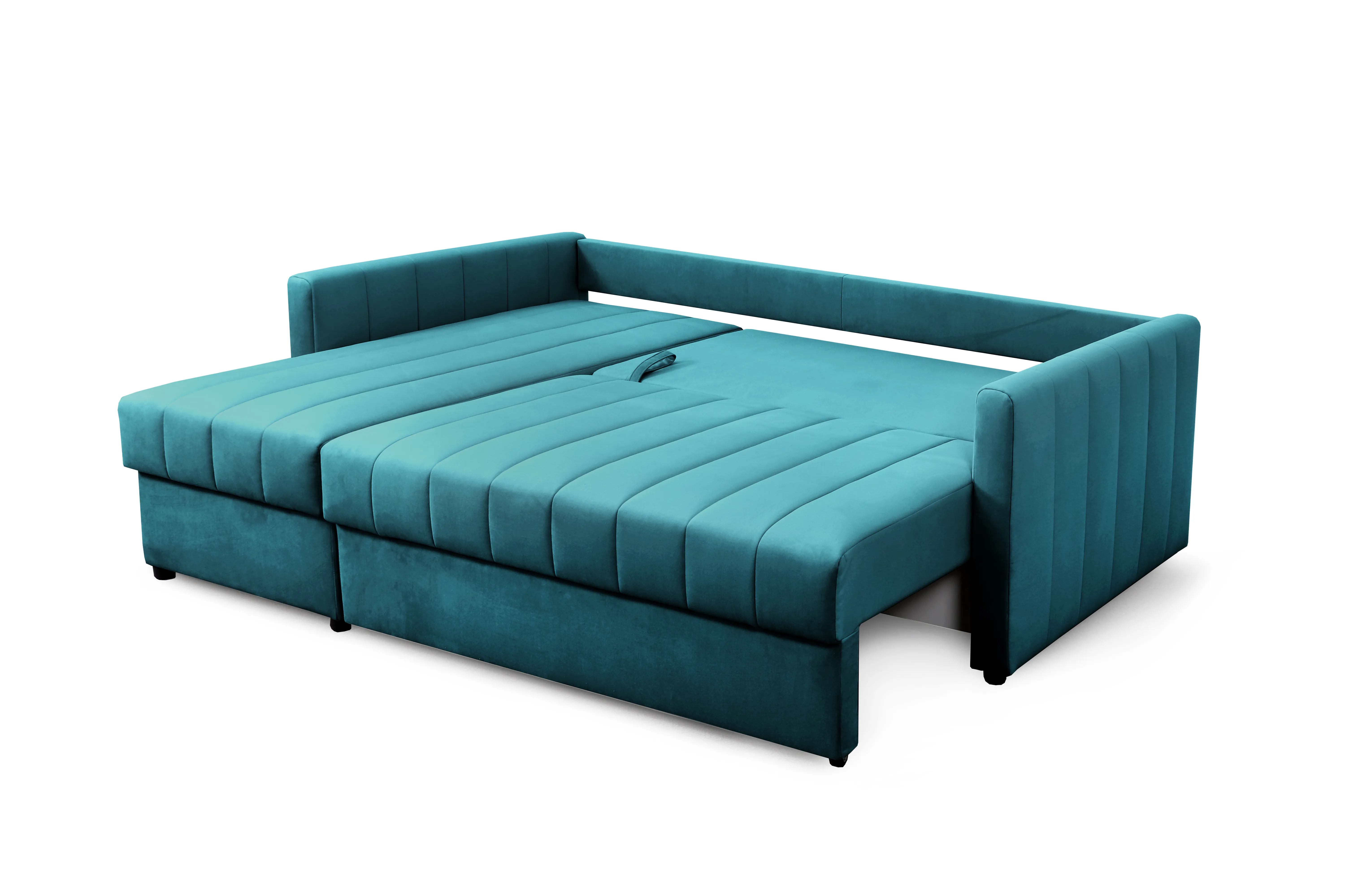 Диван удачно зонирует пространство и дополняет необходимым функционалом. В основании спального места блок независимых пружин для комфортного сна. Вместительный ящик для хранения постельных принадлежностей.