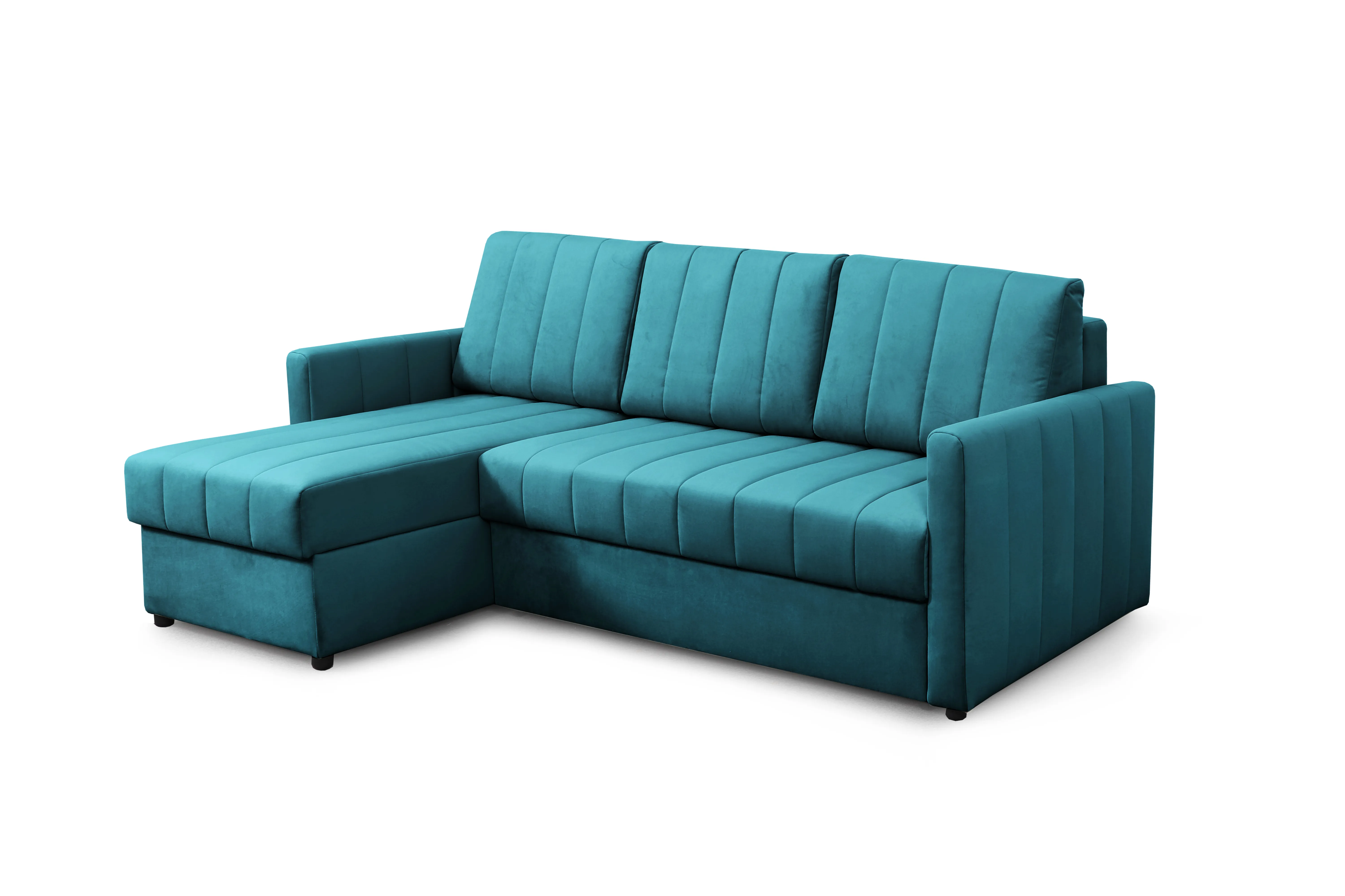 Приспинные подушки, сиденье и подлокотники дивана оформлены модной вертикальной стёжкой в современном стиле.
