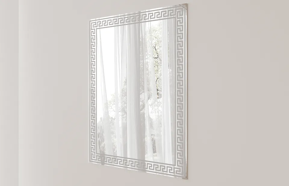 Декорировано рисунком с пескоструйной обработкой Меандр