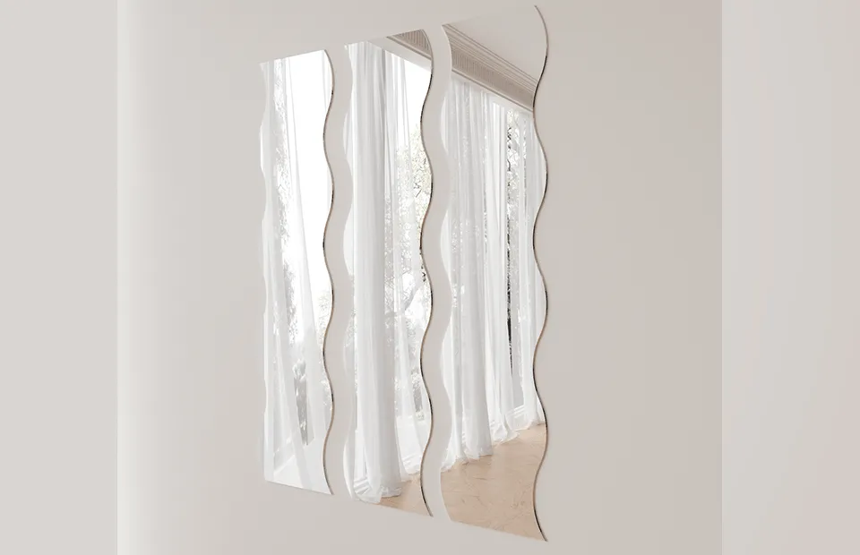 Оно имеет причудливую форму волны, изготовлено из стекла высокого качества, что обеспечивает четкое и ясное изображение.